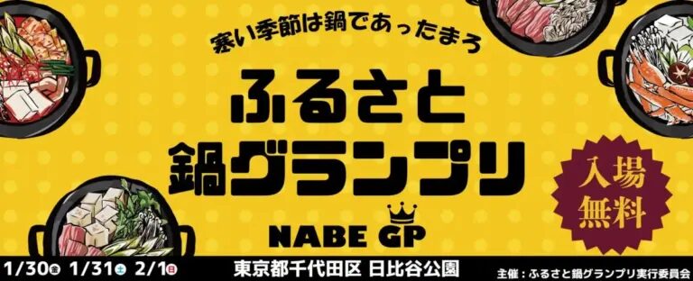 Furusato Nabe Grand Prix is a popular winter food festival centered around regional Japanese hot pot dishes from across the country. Using seasonal seafood, vegetables, and meats, a wide variety of local nabe specialties gather in one place, creating a warm and lively atmosphere during the colder season. The event is known for its interactive style, where visitors can taste different hot pots and take part in voting to determine the grand prix. In addition to nabe dishes, the venue also features opportunities to enjoy Japanese sake from various regions, making it a festival where eating, drinking, and discovering local flavors come together. Held in the open space of Hibiya Park, the event offers a cozy yet energetic winter experience in the center of Tokyo.